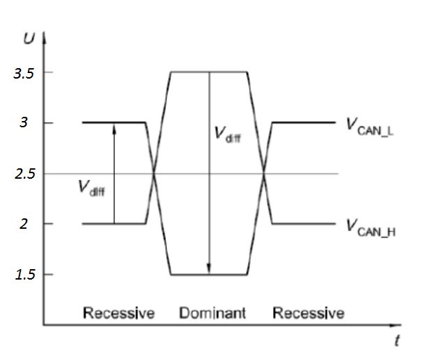在接收狀態,VCAN_L和VCAN_H固定在平均電平,由總線終端決定。Vdiff低於最大閾值時,接收狀態在總線空閒和接收數據位期間傳遞。